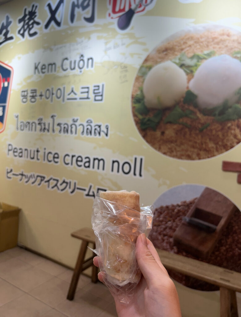 削りたてのピーナッツとタロイモのアイスを包んだものです!
