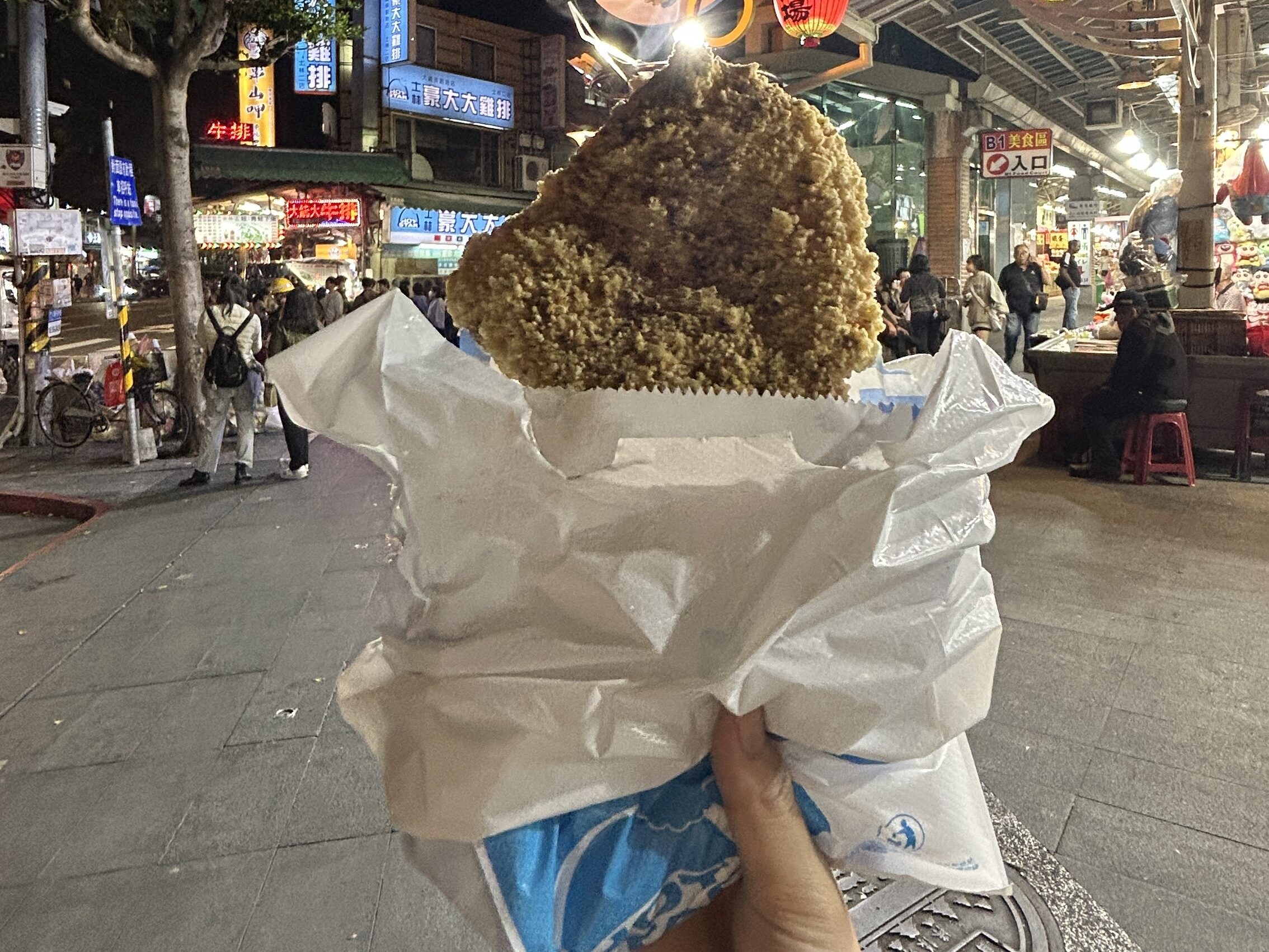 台北の士林夜市の名物で、顔よりも大きいチキンカツがインパクト抜群です!