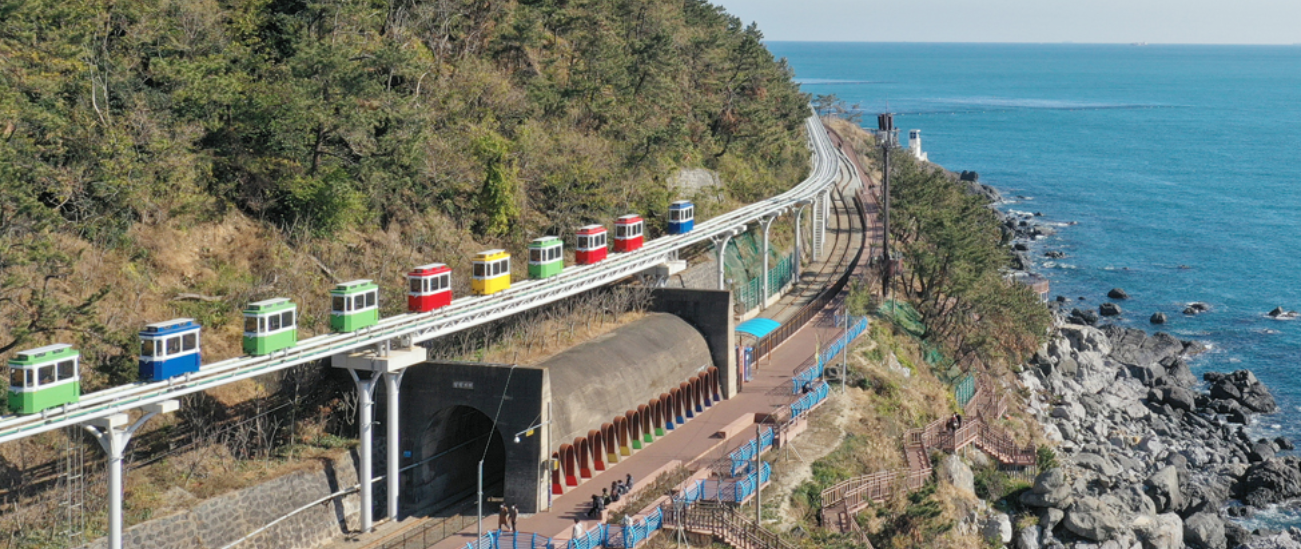 釜山の海雲台(ヘウンデ)にある、空中レールを移動するカラフルな1〜4人用の乗り物です!